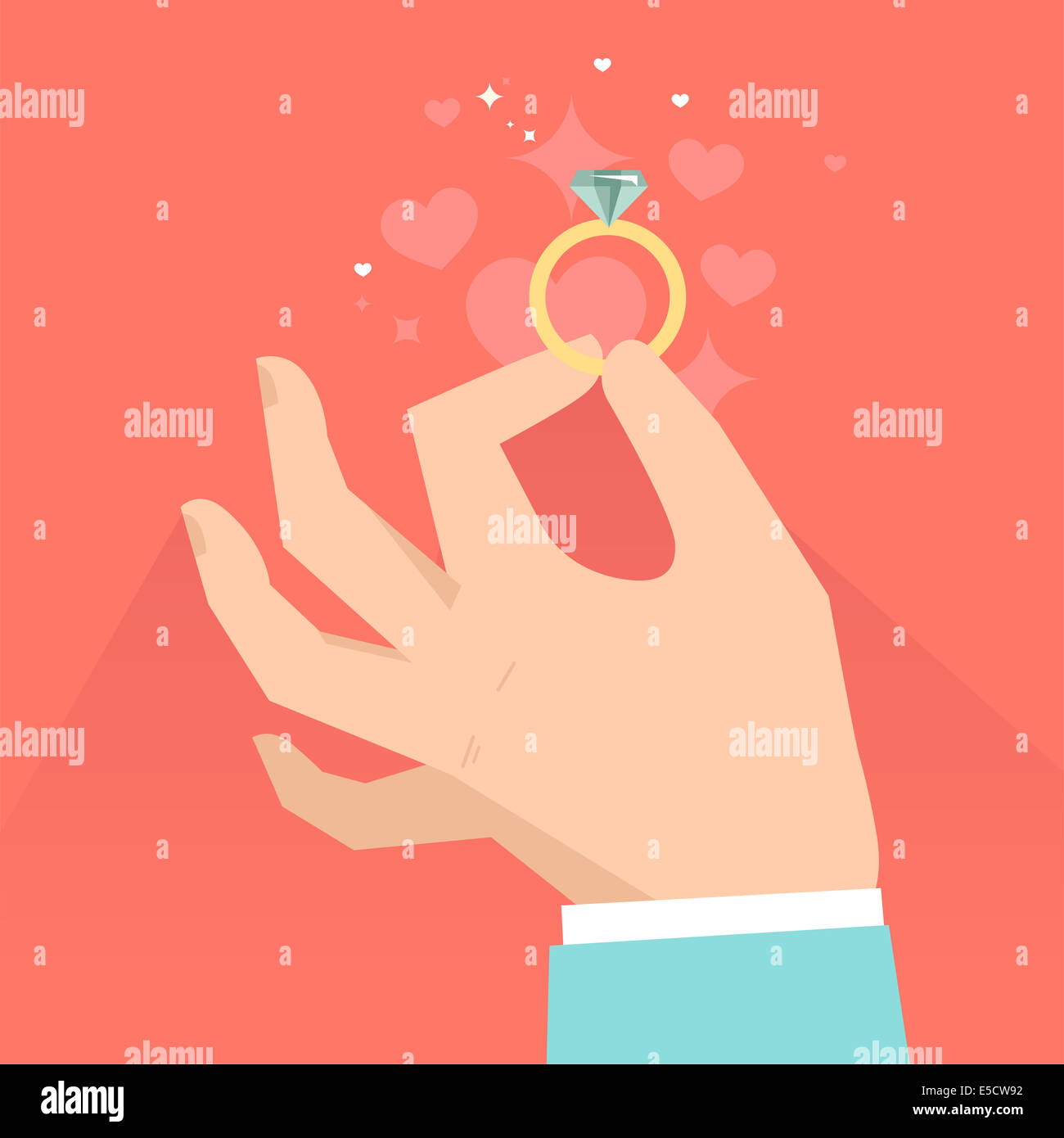Maschio Di Mani Anello Di Fidanzamento In Stile Appartamento Per Il Giorno Di San Valentino Biglietto Di Auguri Illustrazione Vettoriale Immagine E Vettoriale Alamy