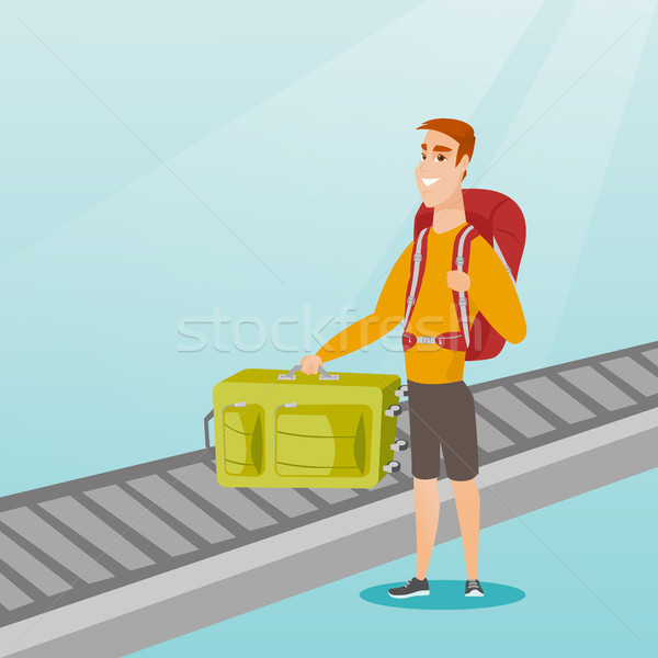 Man Picking Up Suitcase From Conveyor Belt Vector Illustration C Rastudio Stockfresh