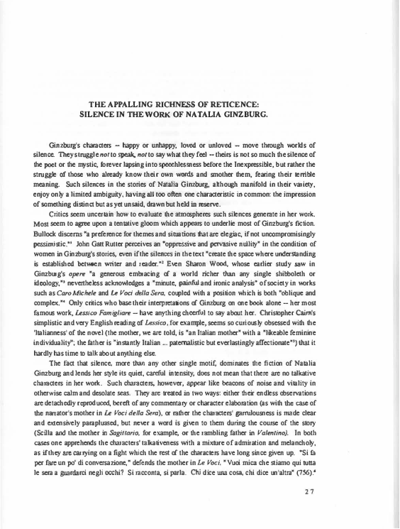 Pdf The Appalling Richness Of Reticence Silence In The Work Of Natalia Ginzburg Ian Almond Academia Edu