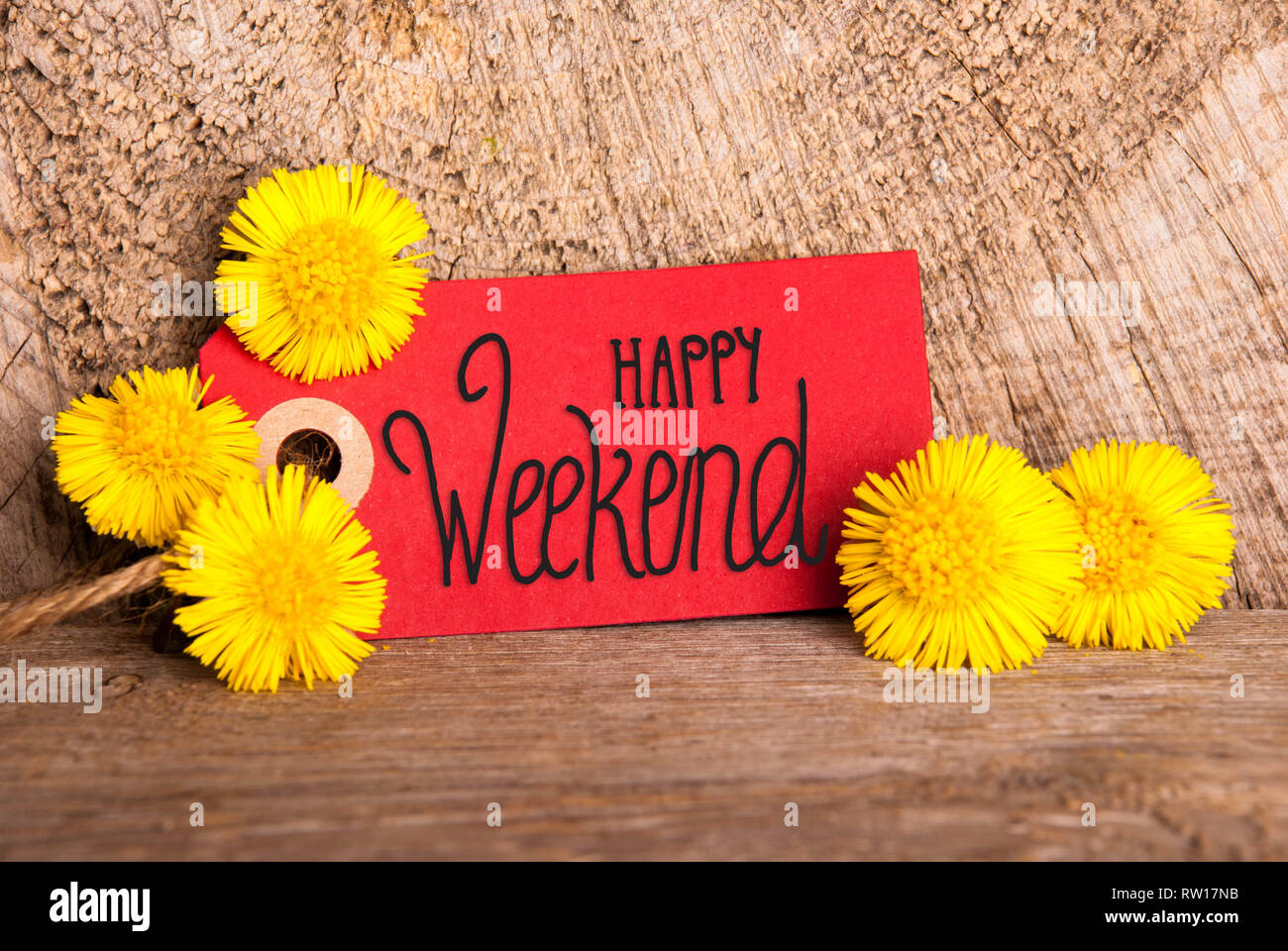 Etichetta Rossa Tarassaco Inglese Calligraphy Happy Weekend Foto Stock Alamy