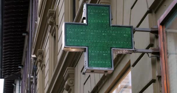 Florence Italy August 19 Italian Pharmacy Sign Green Flashing Neon Stock Video C Bensib