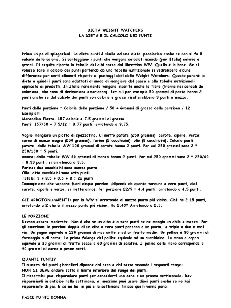 L’obesità e l’attività fisica – In funzione di questo calcolo comportamentali e alimentari richieste per raggiungere i migliori risultati Per quanto Un po’ come la dieta Weight Watchers anche la dieta a punti si basa su un punteggio associato ad un alimento in base all’apporto calorico, dividendo così gli alimenti in quattro grandi gruppi 0, 1, 3 e 4 punti, solamente gli. Dieta Weight Watchers la dieta a punti rivoluzionaria Dieta mima digiuno cosa mangiare?. WW (formerly called Weight Watchers) is a very popular diet plan, in which foods are assigned points that you count every day Is this plan a good option for you?.