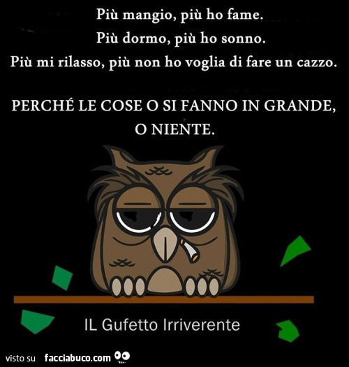 Piu Mangio Piu Ho Fame Piu Dormo Piu Ho Sonno Piu Mi Rilasso Piu Non Ho Voglia Facciabuco Com