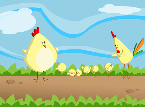 Un Vettore Cartoon Illustrazione Di Una Chioccia Con I Suoi Cinque Pulcini Nel Cortile Immagine E Vettoriale Alamy