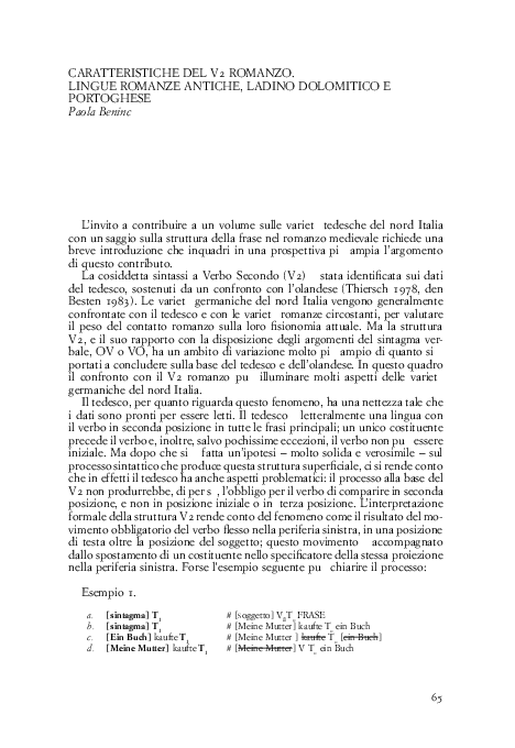 Pdf Caratteristiche Del V2 Romanzo Lingue Romanze Antiche Ladino Dolomitico E Portoghese Paola Beninca Academia Edu
