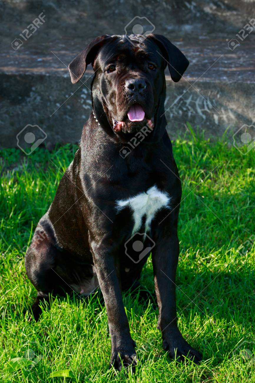 Dog Breed Italiano Cane Corso Sitting On The Green Grass In A Stock Photo Picture And Royalty Free Image Image