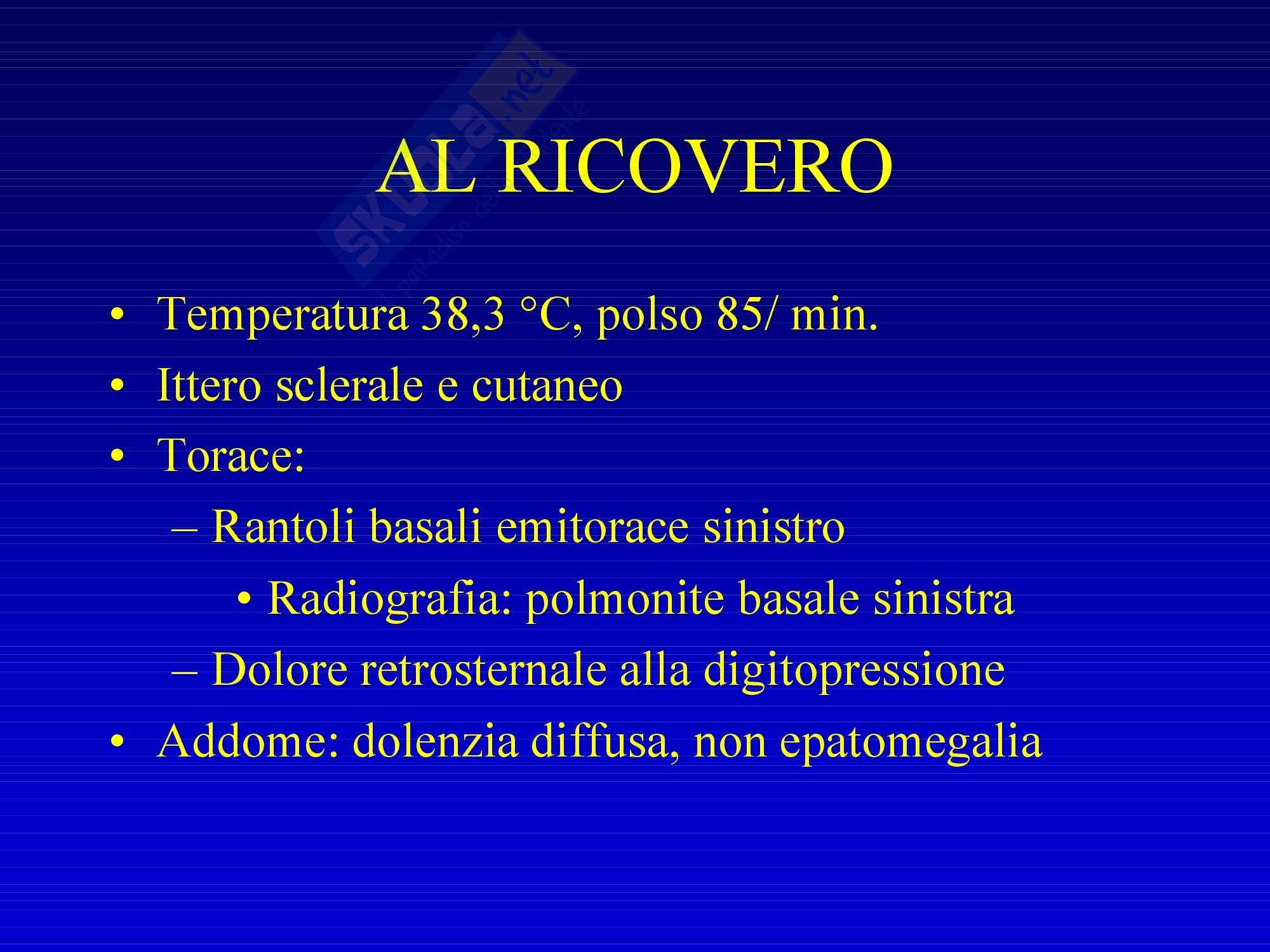 Malattia del tratto biliare, tra cui cirrosi biliare primitiva, colangite sclerosante Sintomi e segni Dolore addominale, cronico a livello del fianco, del basso addome, della regione lombosacrale Sintomi sistemici affaticamento, febbre, perdita di peso. La Colangite Sclerosante Primitiva è una malattia cronica rara che interessa i grandi dotti biliari del fegato (intraepatici) e le vie biliari principali (extraepatiche), strutture preposte a trasportare la bile prodotta dal fegato, necessaria per la digestione dei grassi e l'eliminazione del colesterolo e della bilirubina, all'intestino. Si trattava dunque di una colangite sclerosante primitiva Epidemiologia della Colangite Sclerosante Primitiva Prevalenza nei maschi (70% dei maschi, 30% donne), 14 casi ogni , di età compresa tra 2545 anni;.