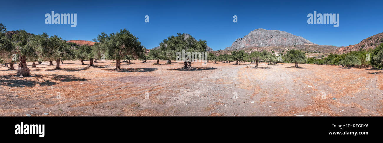 Panorama Di Rurale Tipico Paesaggio Estivo Di Creta Grecia Valle Di Grandi Dimensioni Con Vecchio Olivo Plantation Al Piede Della Montagna Blu Chiaro Sk Foto Stock Alamy