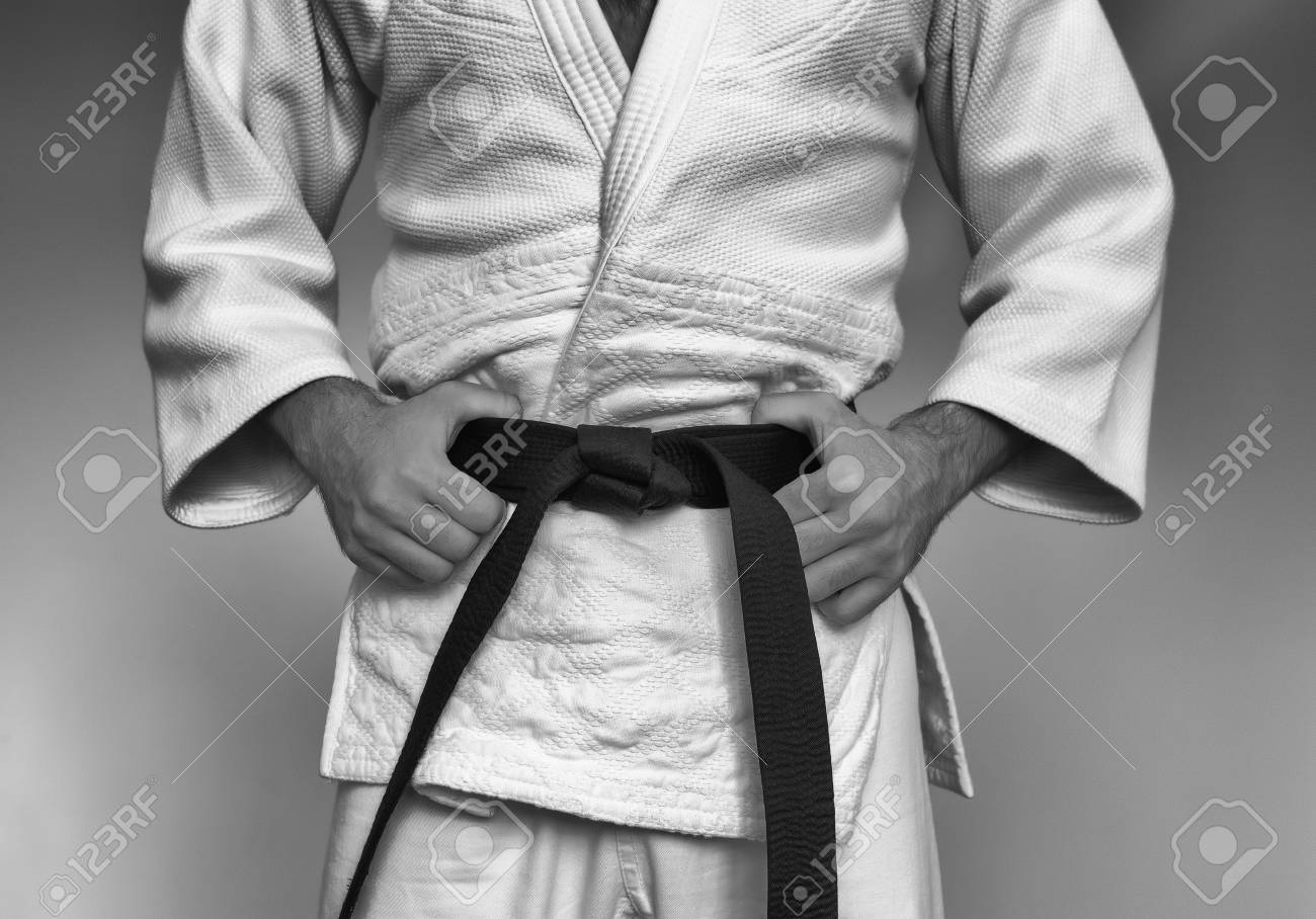 Immagini Stock Maestro Di Arti Marziali Che Stringe La Cintura Nera Tonalita In Bianco E Nero Image