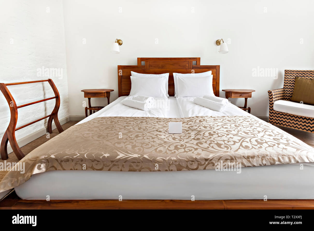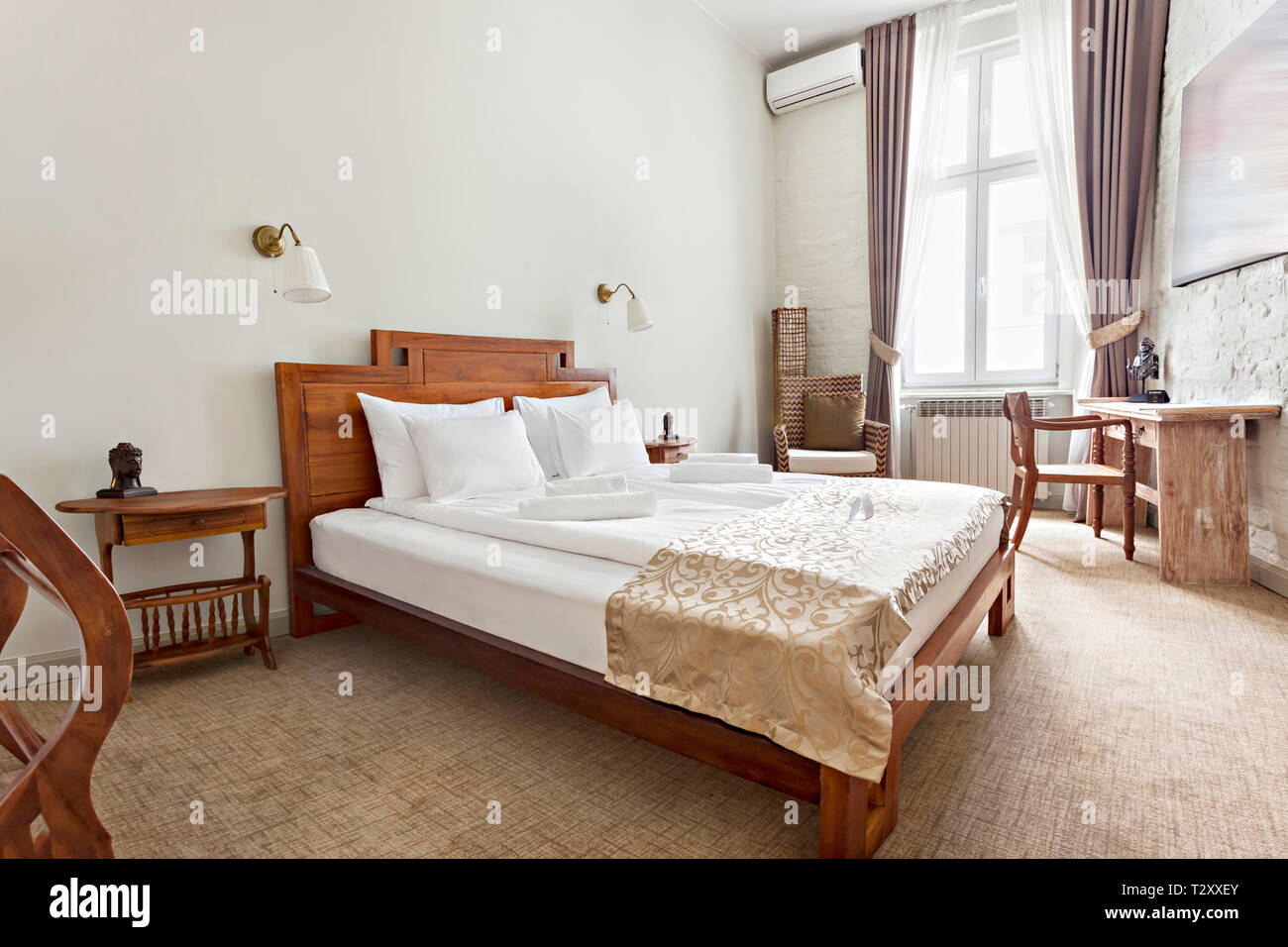Hotel Room Vacation Concept Background Luxurious Modern Bedroom Interior With Double Bed Stock Photo Alamy