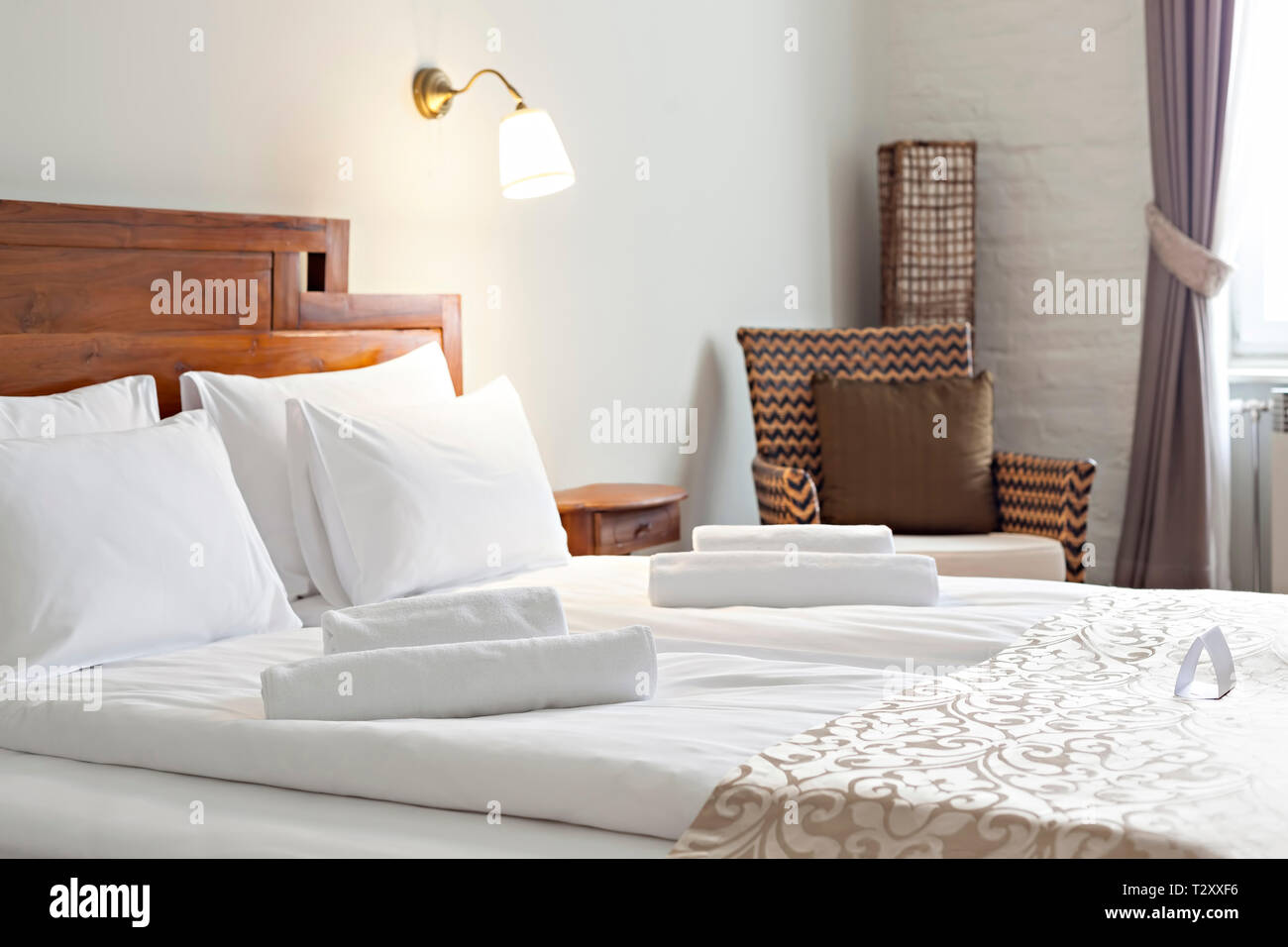 Hotel Room Vacation Concept Background Detail Of Luxurious Modern Bedroom Interior With Double Bed Stock Photo Alamy