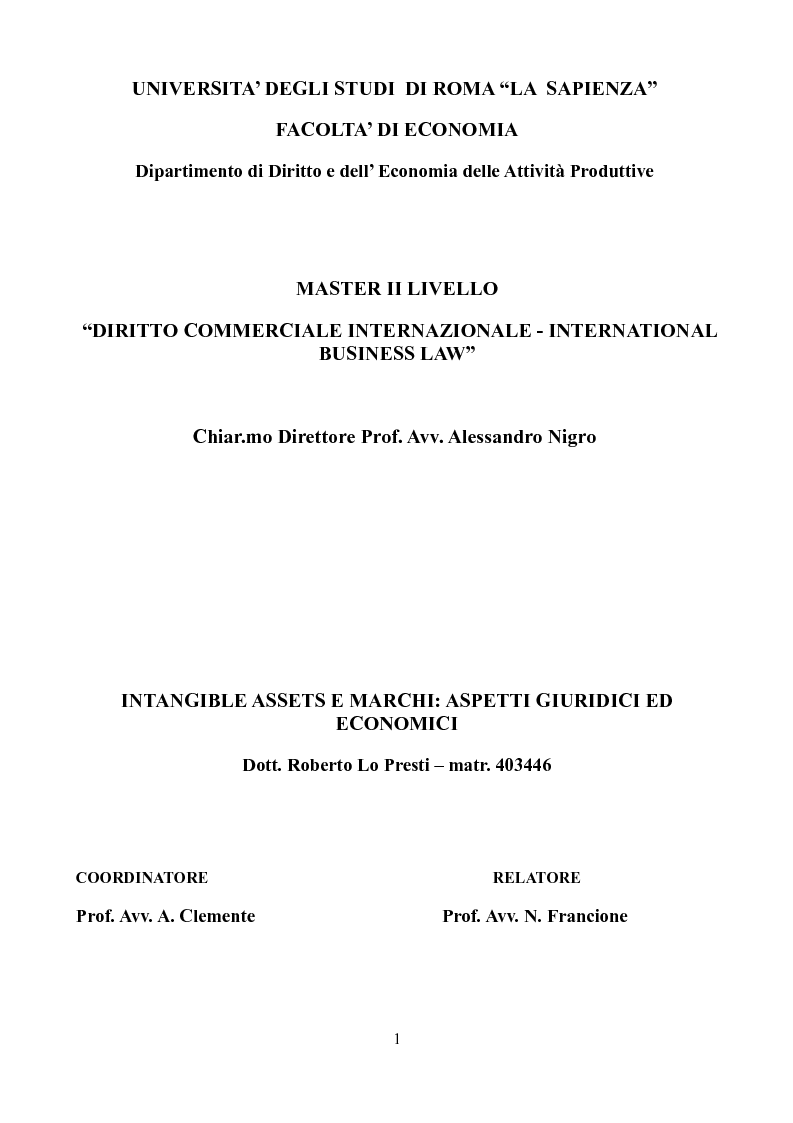 Università di Roma 1 "La Sapienza" MASTER DI II LIVELLO IN "Diritto Commerciale Internazionale" (International Business Law) Italy Western Europe International Business law. Avvocato Cassazionista specializzato in Diritto Commerciale e Diritto del Commercio Internazionale È Professore a contratto di Diritto dell’Impresa avanzato presso la Facoltà di Economia dell’Università degli Studi di Bologna sede di Forlì. MASTER DI II LIVELLO DIRITTO COMMERCIALE INTERNAZIONALE (INTERNATIONAL BUSINESS LAW) AA 19/ XVI EDIZIONE CALENDARIO DELLE LEZIONI Le lezioni si svolgeranno presso il Dipartimento di Diritto ed Economia delle Attività Produttive nei giorni di venerdì, ore e sabato, ore.