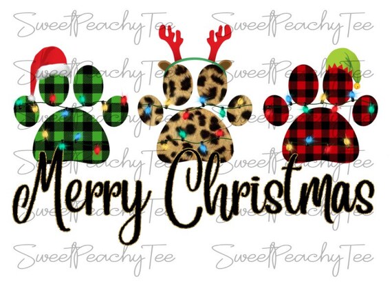 Merry Christmas Dog Paws Sublimation Transfer Ready To Press Etsy