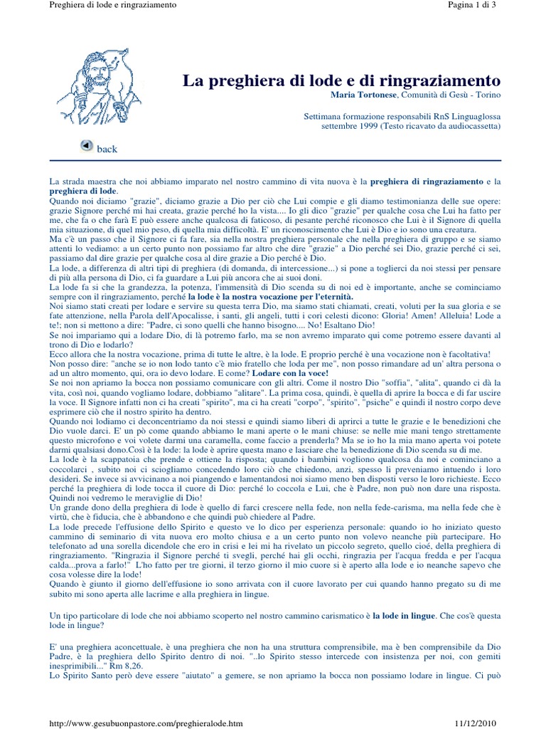 La Preghiera Di Lode E Di Ringraziamento Maria Tortonese Comunita Di Gesu Torino