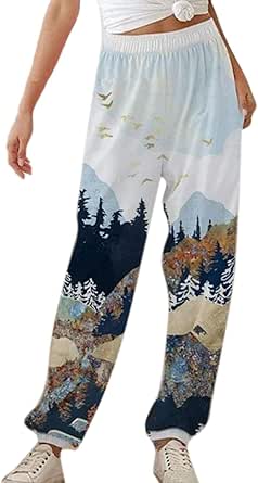 Hibasing Pantaloni Da Donna Con Stampa Foresta Di Alberi Di Montagna Pantaloni Larghi Della Tuta Pantaloni Con Cravatta Autunno Teen Girls Amazon It Abbigliamento