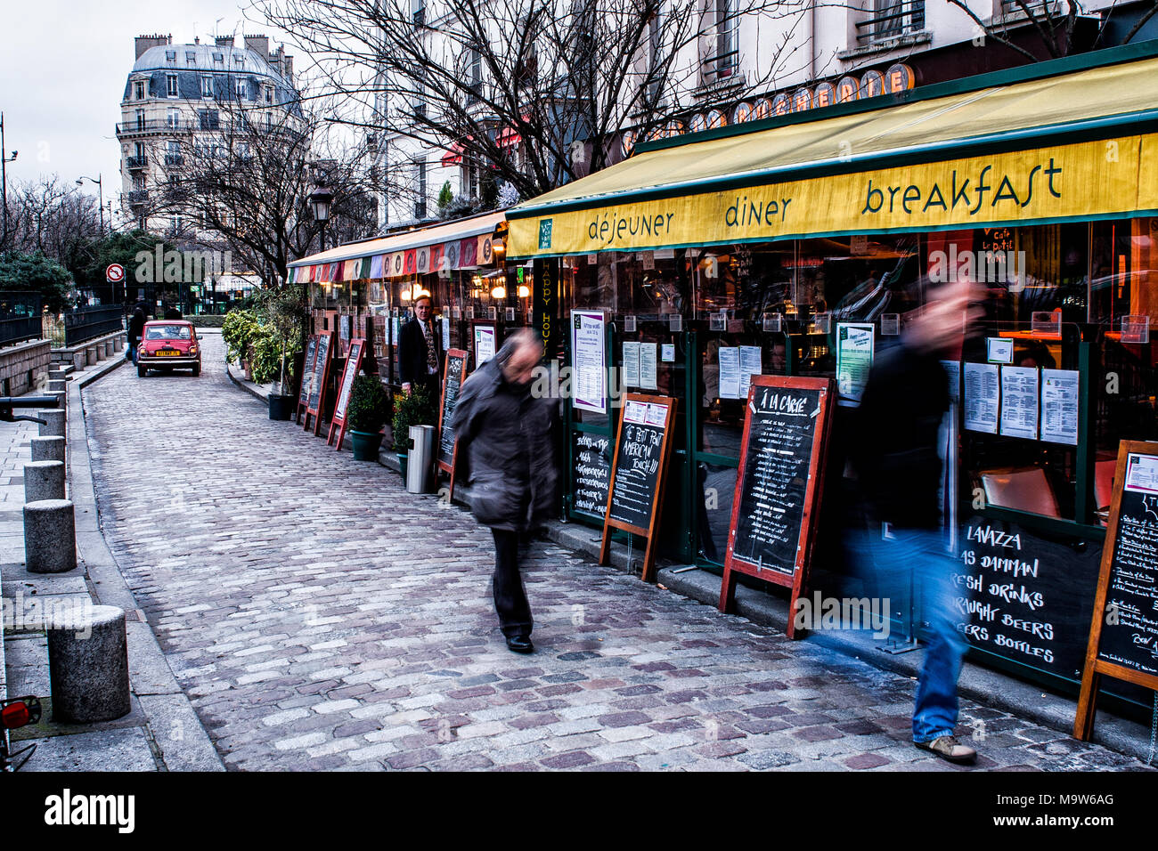 Barrio Latino De Paris Francia Calle Estrecha De Paris Entre Viejas Casas Parisinas Tradicionales Y Cafe En Paris Fotos Retratos Imagenes Y Fotografia De Archivo Libres De Derecho Image