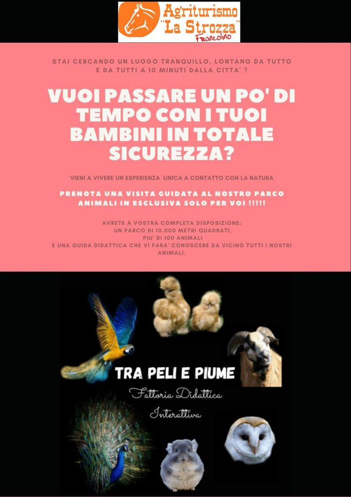 In attesa Anche per Antonella Galante, che gestisce insieme ai figli la “Fattoria degli animali la Collinara”, a Comacchio, una delle più grandi fattorie didattiche del Ferrarese, si tratta. Registrazione Bologna Ferrara Forlì Cesena Modena Parma Piacenza Ravenna Reggio Emilia Rimini Fattorie Didattiche Friuli Venezia Giulia Gorizia Pordenone Trieste. C’è un’opportunità per agriturismi e fattorie didattiche per lo sviluppo e la commercializzazione dei servizi turistici approvata della regione Emilia Romagna (delibera di Giunta 1268/17) ed è offerta dal bando che mette a disposizione oltre un milione e 160 mila euro dal Programma regionale di sviluppo rurale per incentivare l’offerta turistica e favorire l’aggregazione delle imprese.