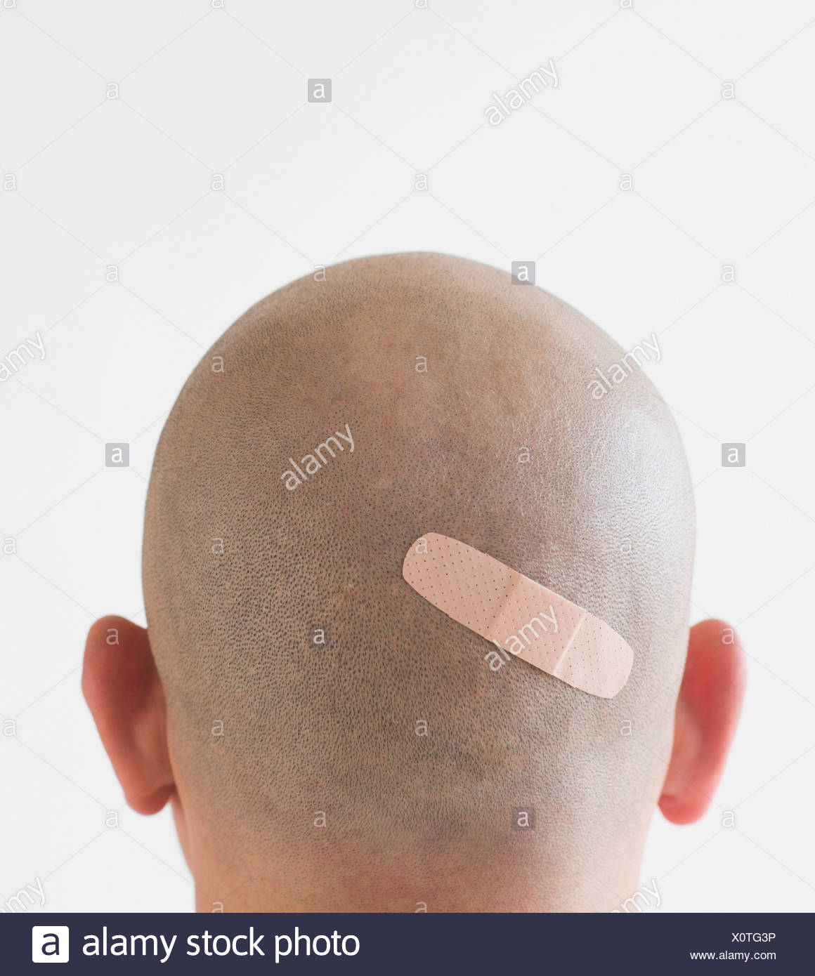 Vista Posteriore Dell Uomo Con Bendaggio Adesivo Sulla Testa Rasata Foto Stock Alamy