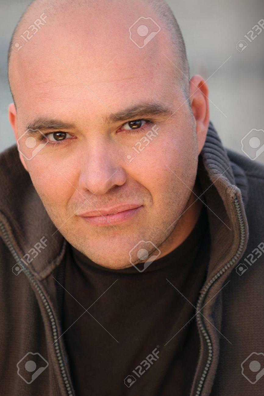Immagini Stock Closeup Ritratto Di Un Uomo Di Mezza Eta Con Fiducioso La Testa Rasata Image