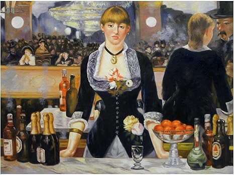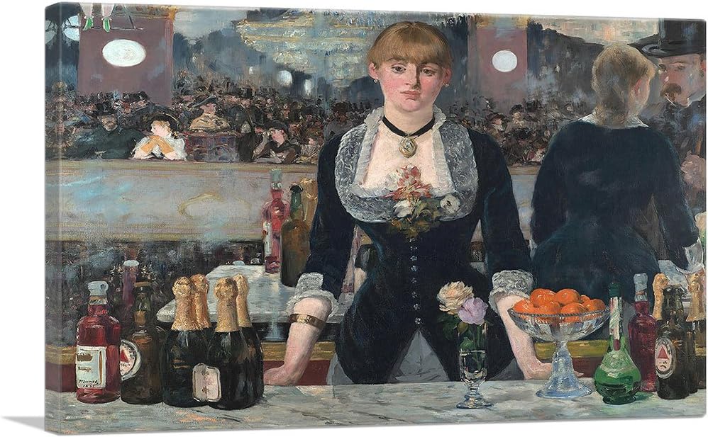 ARTCANVAS A Bar at The Folies Bergere 18 Canvas Art Print by Edouard Manet 26" x 18" (075" Deep) Bar at the FoliesBergere by Edouard Manet, Art Print Poster 11" x 14" signwin Framed Canvas Wall Art Path Through The Corn at Pourville by Claude Monet Canvas Prints Home Artwork Decoration for Living Room,Bedroom 24x24 inches. Grazie infinite per la visione 🙏I miei libri per l'esame di maturità e per il III e IV anno su Amazon (GRATIS con KINDLE Unlimited) 🎓😀 ht. A Bar at the FoliesBergère was presented by Manet at the 18 Paris Salon exhibition, just one year before his death The painting is the culmination of his interest in scenes of urban leisure and spectacle, a subject that he had developed in dialogue with Impressionism over the previous decade.