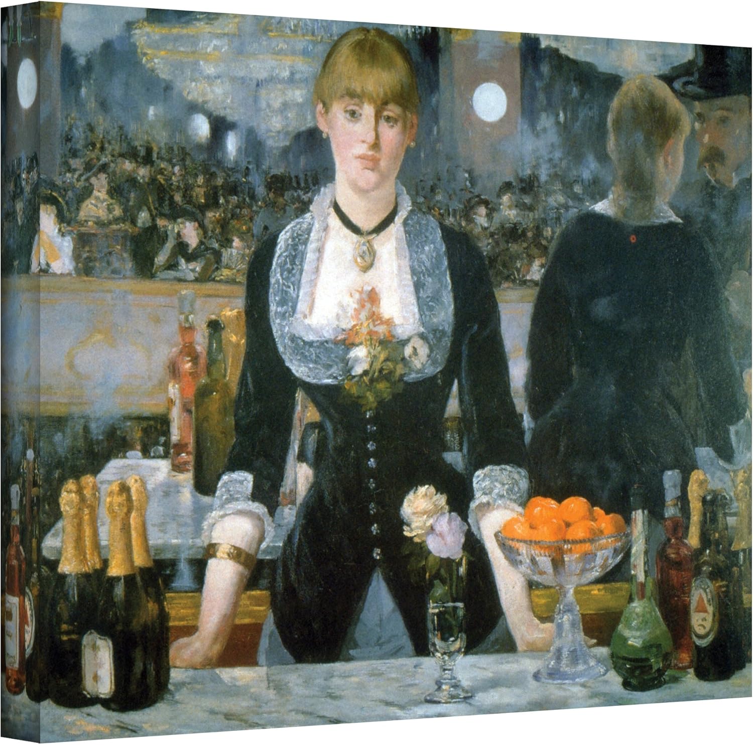 A machine for time travel, virtual reality transports you to the Folies Bergère at the end of the 19th century Suzon, the barmaid with the enigmatic gaze at the centre of the painting, conceals mysteries that will be revealed through a dizzying waltz between the viewpoints of the different characters. Dernier grand tableau d’Édouard Manet (12–18), Un bar aux Folies Bergère est une œuvre subtile à plus d’un titre, sa fine observation psychologique se doublant d’un jeu visuel troublant qui mue la scène en un théâtre de fauxsemblants Car derrière la serveuse, un miroir nous révèle le spectacle bouillonnant du monde moderne. ARTCANVAS A Bar at The Folies Bergere 18 Canvas Art Print by Edouard Manet 26" x 18" (075" Deep) Bar at the FoliesBergere by Edouard Manet, Art Print Poster 11" x 14" signwin Framed Canvas Wall Art Path Through The Corn at Pourville by Claude Monet Canvas Prints Home Artwork Decoration for Living Room,Bedroom 24x24 inches.