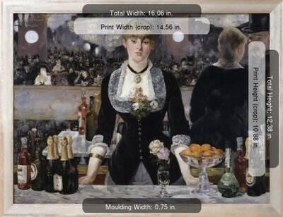 A Bar at the FoliesBergere Framed art print by Edouard Manet # Framed print, 51 x 62 cm £130 Add to bag The Artist Edouard Manet Born in Paris, Édouard Manet (12 18) connected with the Impressionist movement from its fledgling days but his early paintings ‘Le Déjeuner sur l’Herbe’ and ‘Olympia’ are regarded as his. A pivotal figure in the transition from Realism to Impressionism, Manet broke new ground in choosing subjects from the events of his own time His work is considered 'early modern', partially because of the black outlining of figures, which draws attention to the surface of the picture planeA Bar at the FoliesBergere was completed in 18 and was his last major workArtistgrade canvas is. A Bar at The Folies Bergere by Edouard Manet Edouard Manet Giclee Canvas Prints Wrapped Gallery Wall Art Stretched and Framed Ready to Hang 16" x 24" Visit the wall26 Store 47 out of 5 stars 105 ratings Price $3299 & FREE Shipping Size 16" x 24" 12" x 18" 16" x 24" 24" x 36" 32" x 48" Color A Bar at the Folies Bergere.