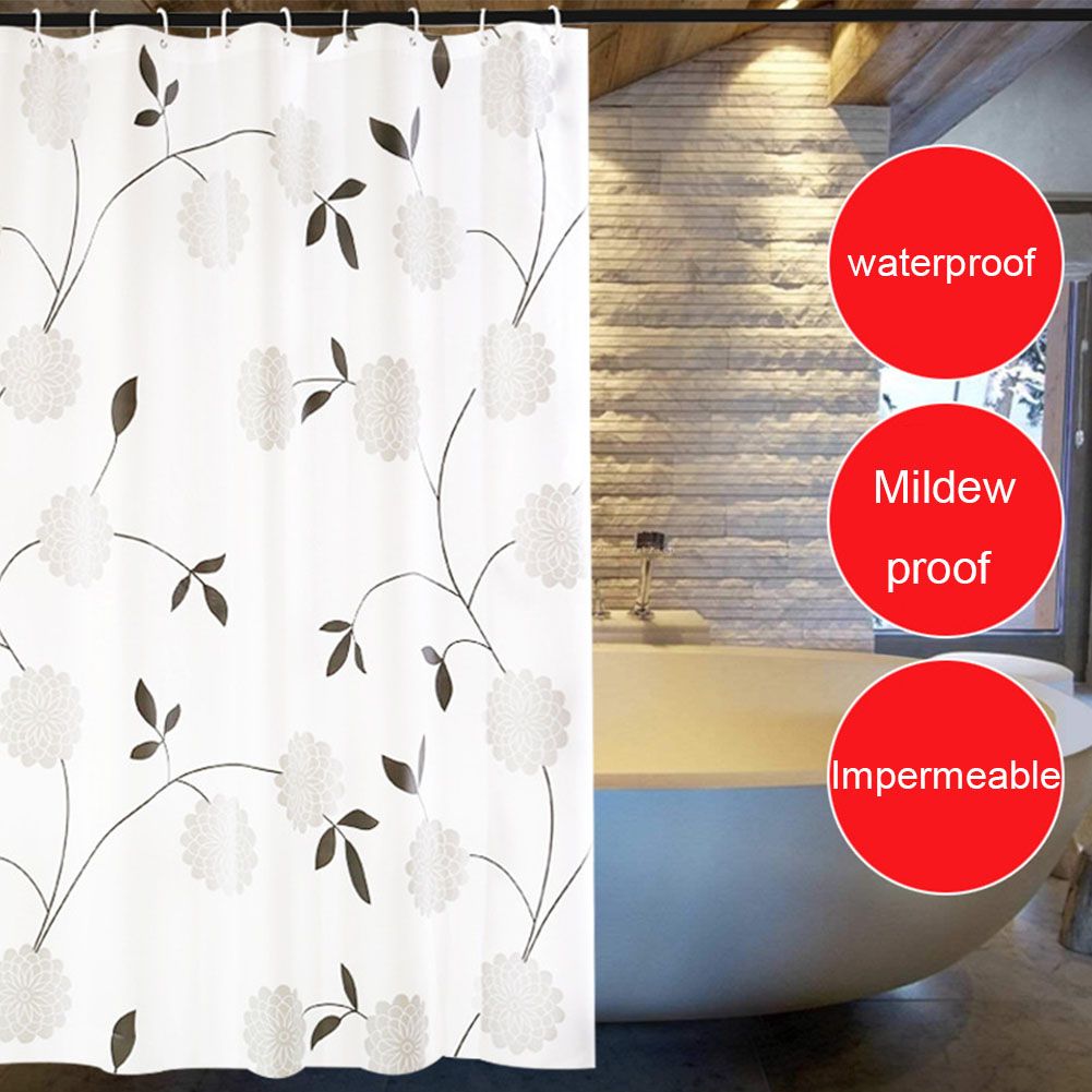 Thick Waterproof With Hooks Anti Mold Shower Curtain Opaque Polyester Fabric
