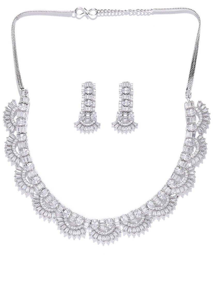 White Stones Necklace Set Silver Plated Jewellery New Fashion Cz Collections Nl
