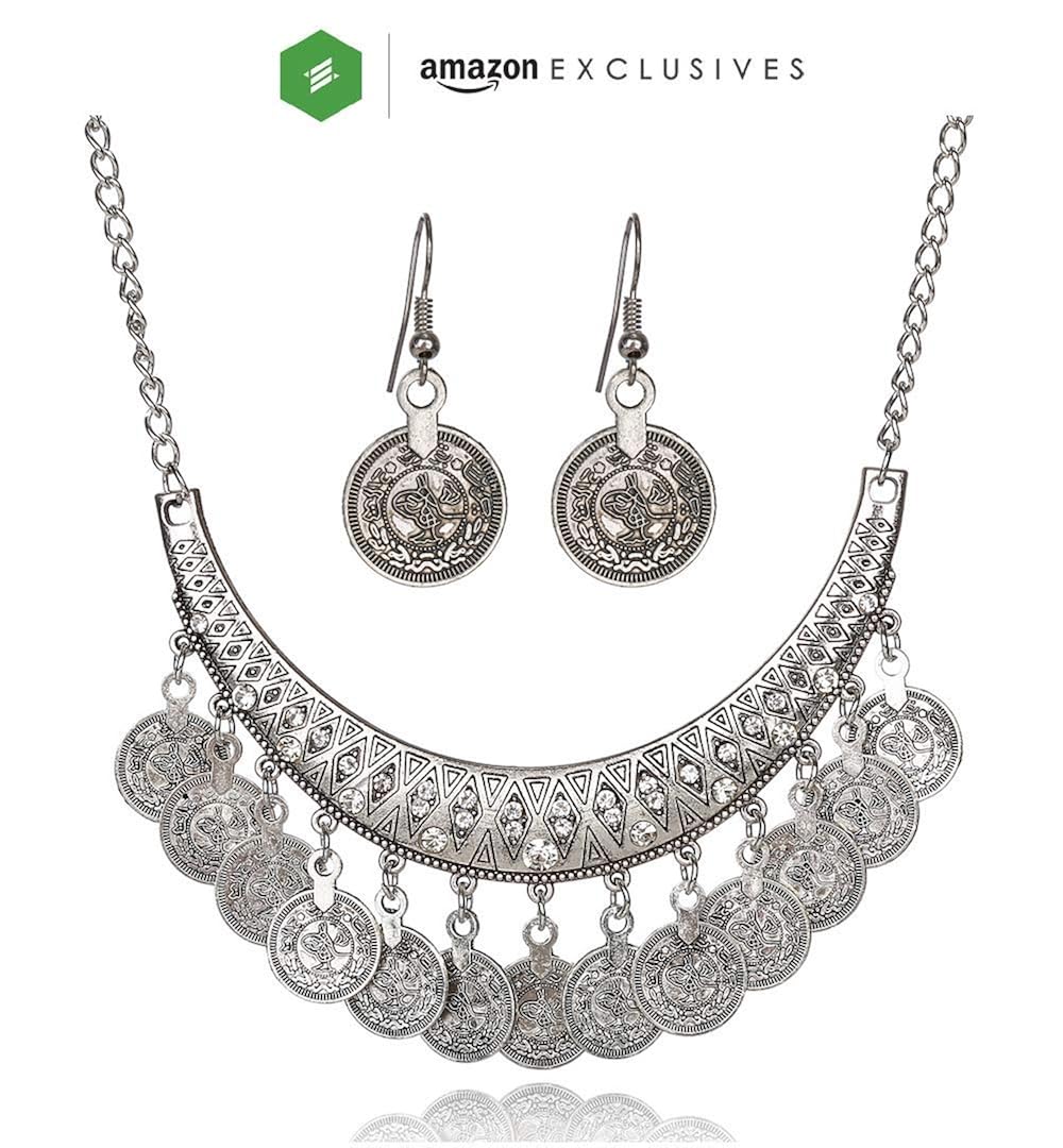 Buy Tara Jewels Ethnic Tribal Design Oxydised Silver Plated Jewellery Set For Women Bohemian Style Necklace Earrings Set Vintage Designer Jewellery Sets From Tara Jewels Necklace Earrings At Amazon In