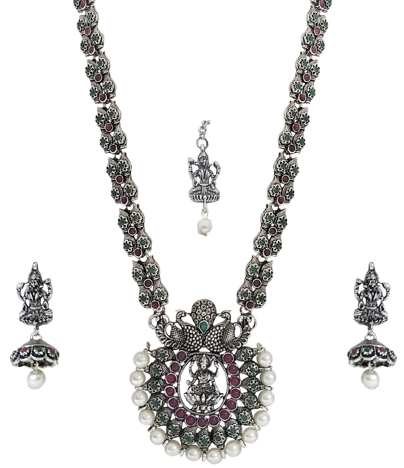 Matushri Art Temple Jewelry Of God Laxmi Dancing Peacock Antique German Oxidised Silver Plated Jewellery Set For Women Buy Online In Belize At Belize Desertcart Com Productid