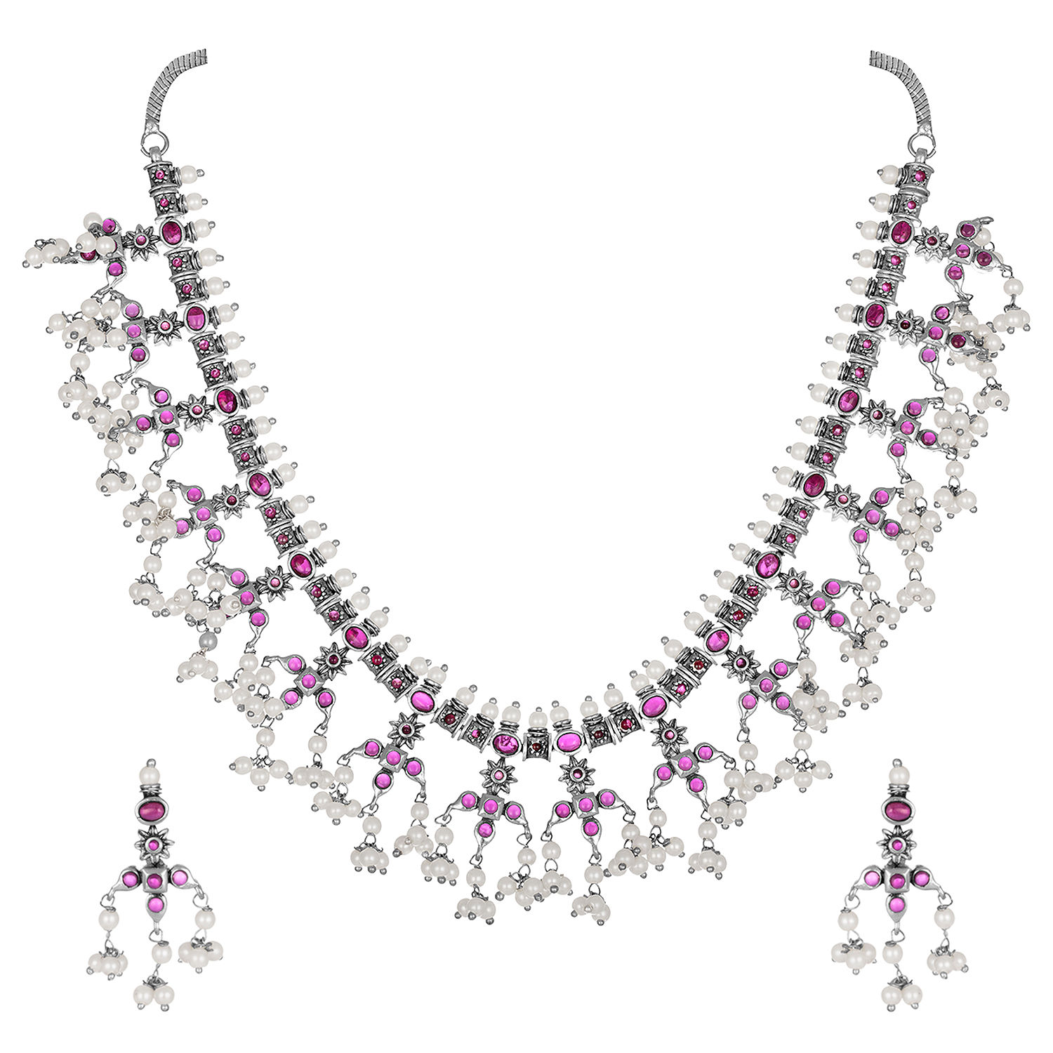 Peora Jewellery Baby Pearl Red Silver Plated Necklace Earrings Jewellery Set Wedding Buy Peora Jewellery Baby Pearl Red Silver Plated Necklace Earrings Jewellery Set Wedding Online At Best Price In India