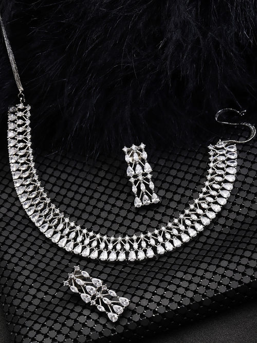 Buy Priyaasi Silver Plated American Diamond Studded Jewellery Set Jewellery Set For Women Myntra
