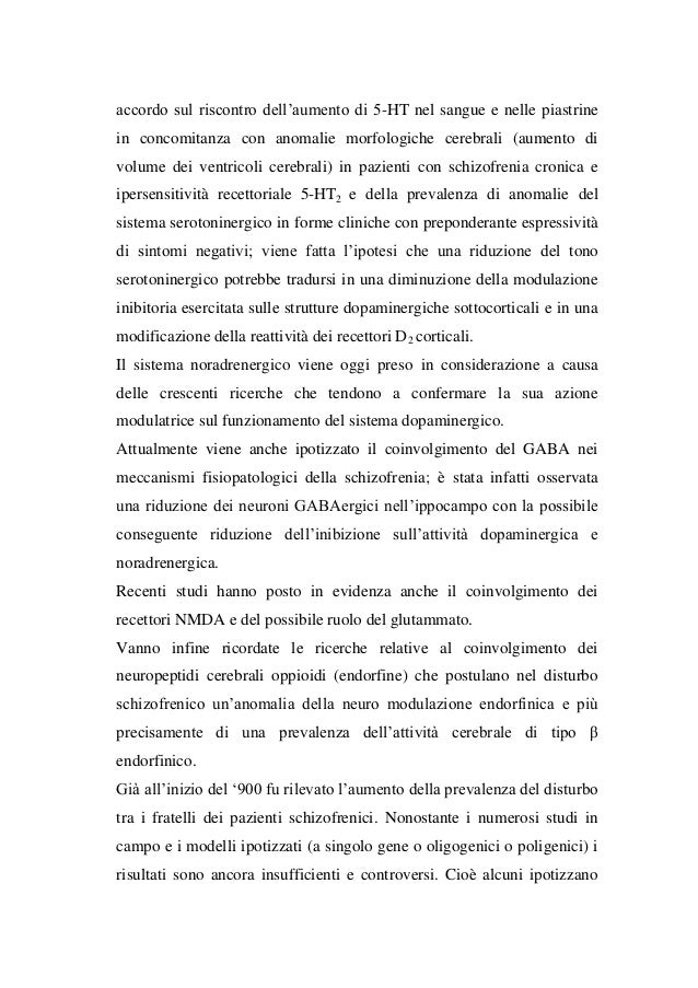 Collocazione precisa nella corteccia cerebrale la presenza di rilievi sulla teca cranica consentirebbe la loro localizzazione, la determinazione del loro sviluppo e dei caratteri psichici dell'individuo L'intuizione di Gall è stata parzialmente confermata 5 dalla localizzazione delle aree deputate al linguaggio (area di Broca e area di. Elenco delle tesi pubblicate che approfondiscono il tema Schizofrenia, ordinate in base alla data di pubblicazione Sono liberamente consultabili l'abstract e le prime 10 pagine dell'introduzione Registrandosi è possibile scaricare gratuitamente le preview delle tesi in PDF (circa 1015 pagine). Nella fase del prodomo, ovvero del periodo che intercorre tra l’esordio del cambiamento nell’individuo e l’esordio della psicosi, può.