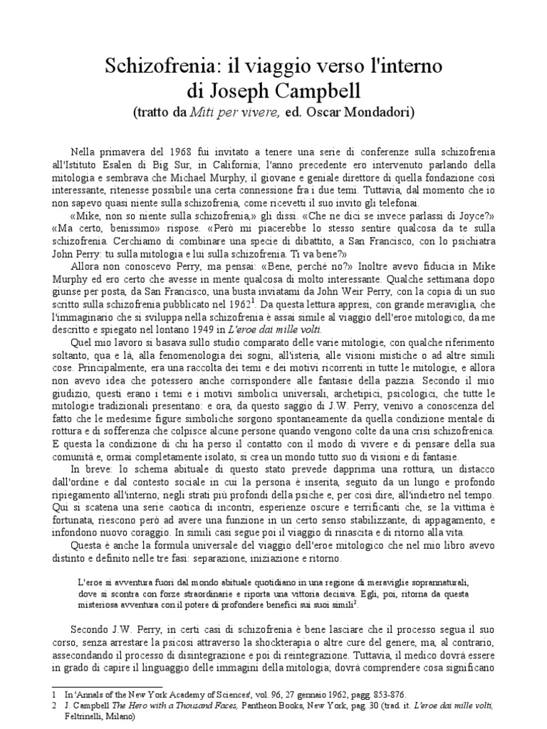 Joseph Campbell Schizofrenia Il Viaggio Verso L Interno Estratto Da Miti Per Vivere