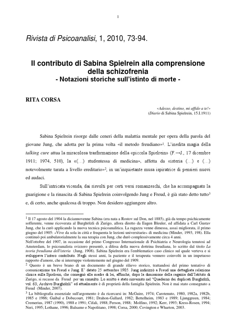 Rivista Psicoanalisi Sabina Spielrein Comprensione Schizofrenia Pdf