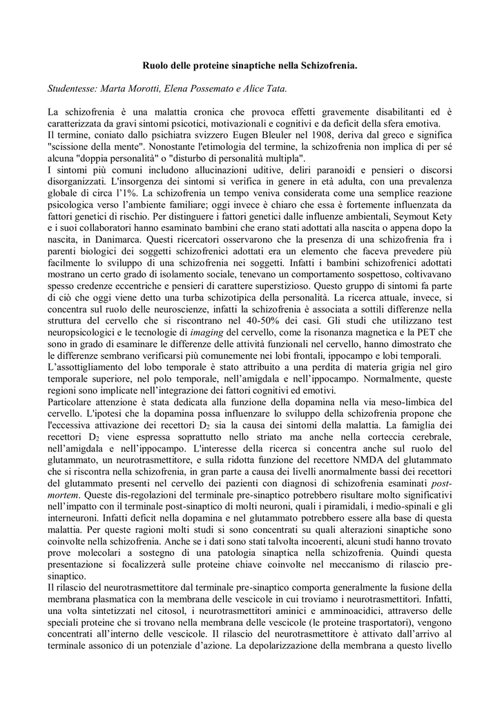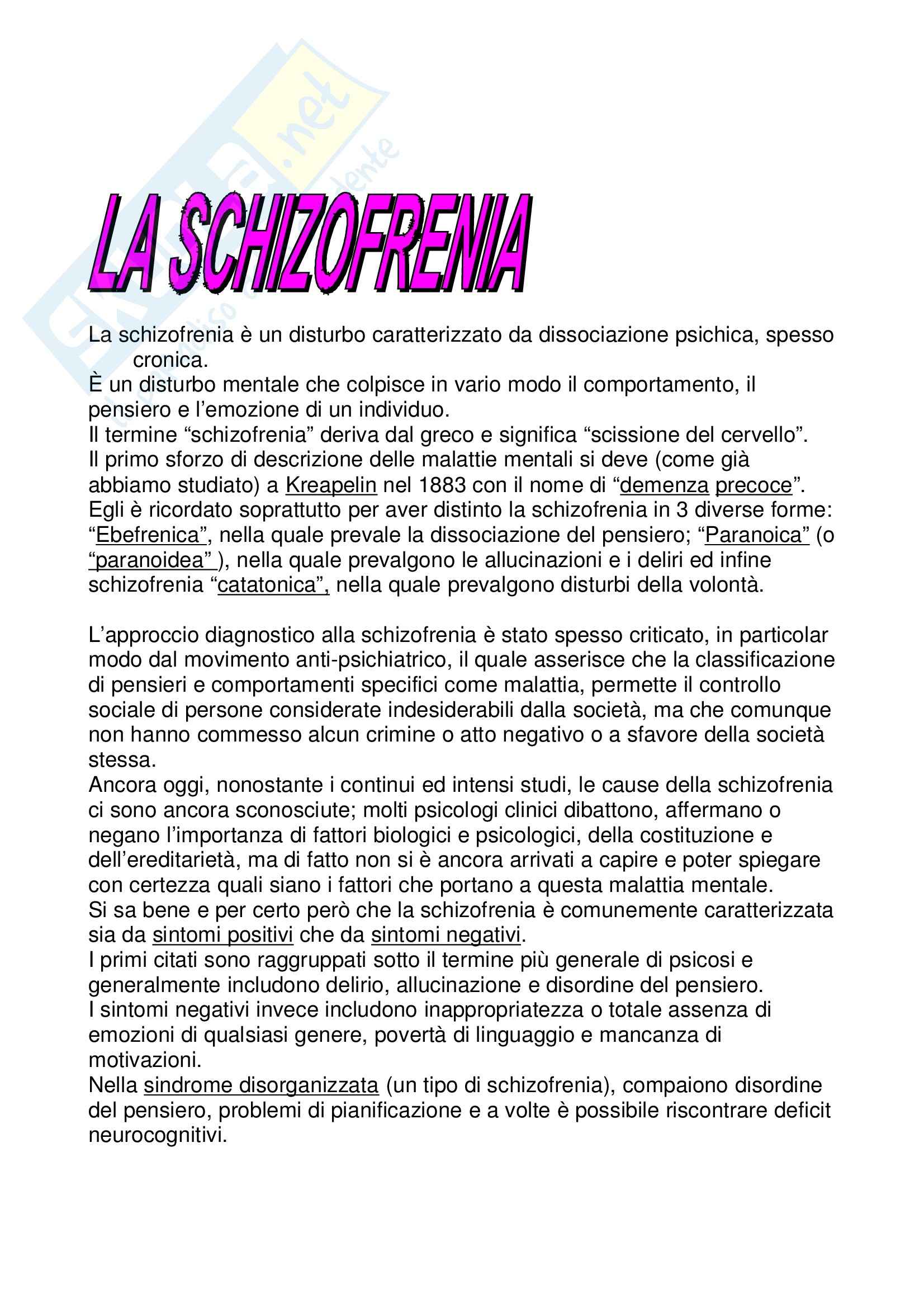 Nuove intuizioni sulla schizofrenia Pubblicato da Daniele Corbo (Orme Svelate) il 13 febbraio E se la chiave per una migliore comprensione della schizofrenia fosse stata qui da sempre, ma i ricercatori non avessero avuto le risorse per studiarla?. Tesina maturità sull'evoluzione della malattia mentale, i disturbi che hanno comportato durante la prima guerra mondiale e descrizione approfondita della schizofrenia (18 pagine formato doc). Per esperto di psicodevo fare una tesina sulla schizofrenia, mi aiutate ?.