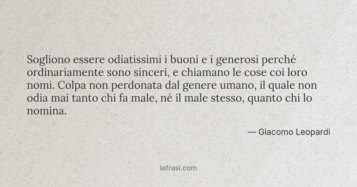 Sogliono Essere Odiatissimi I Buoni E I Generosi Perche