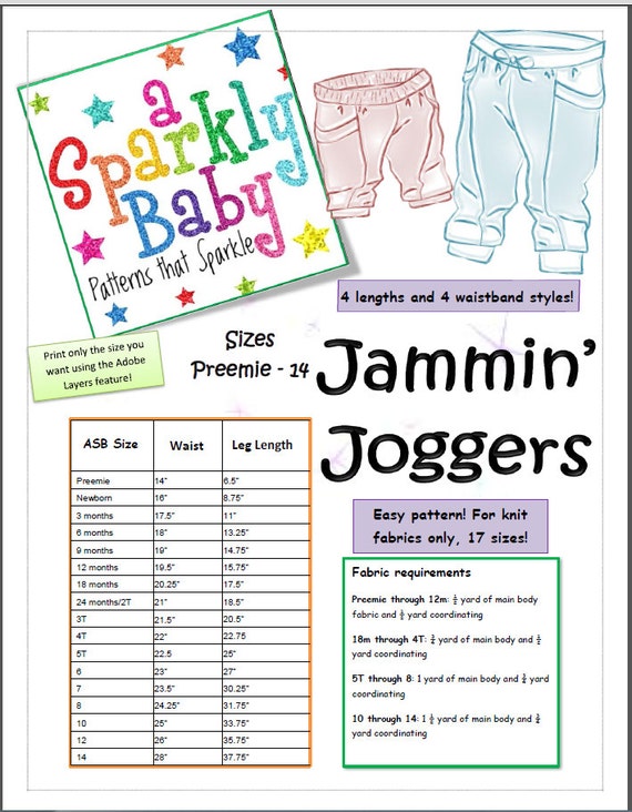 Jammin Joggers By Asb Sizes Preemie 14 With 4 Length Etsy