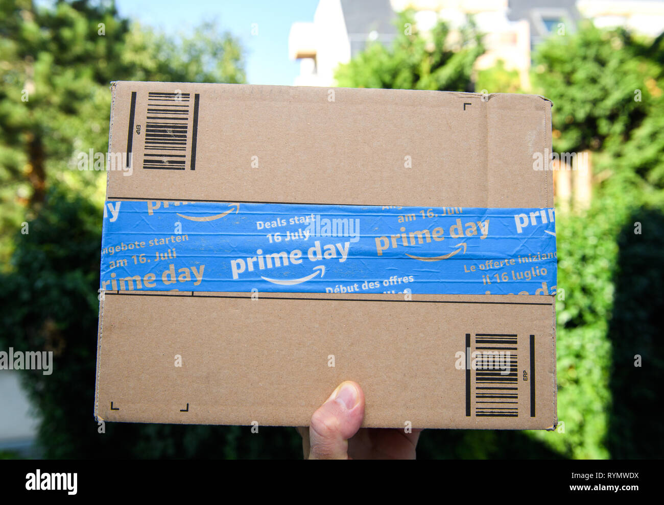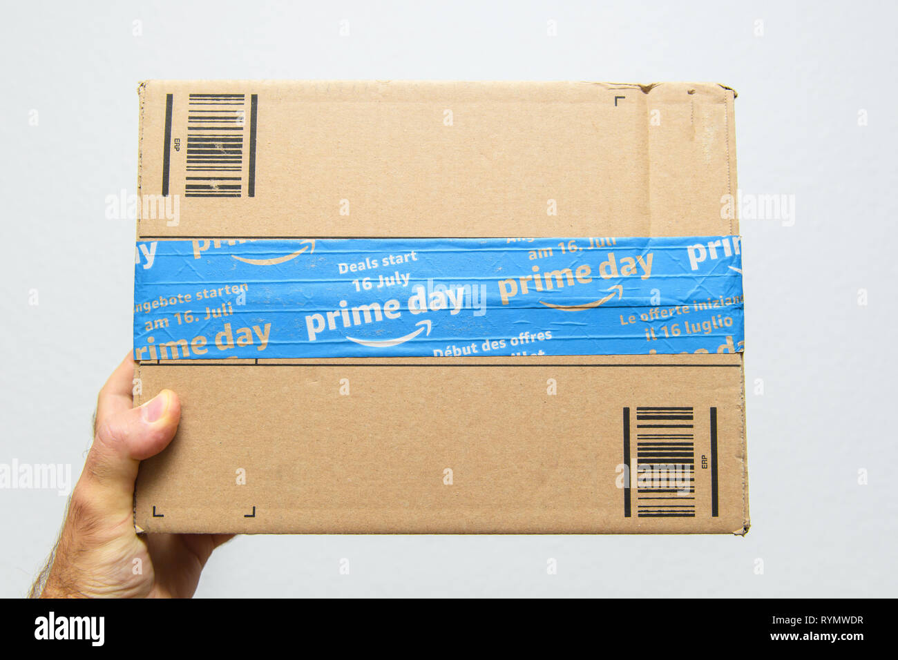 Amazon Primo Logotipo Stampato Sulla Scatola Di Cartone Di Scotch Fotografie Stock E Altre Immagini Di Com Istock