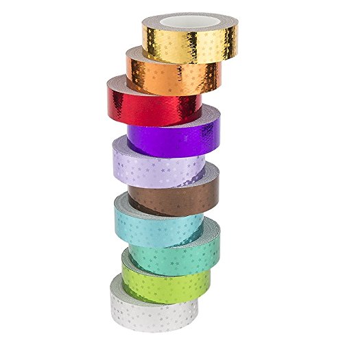 15 Mm X 5 M Scotch Di Carta Nastro Adesivo Washi 10 Diversi Colori Laserato Motivo Stelle Laser 10 Rotoli Nastro Adesivo Decorativo Effetto Olografico Adesivi Nastri Per Arti E Mestieri