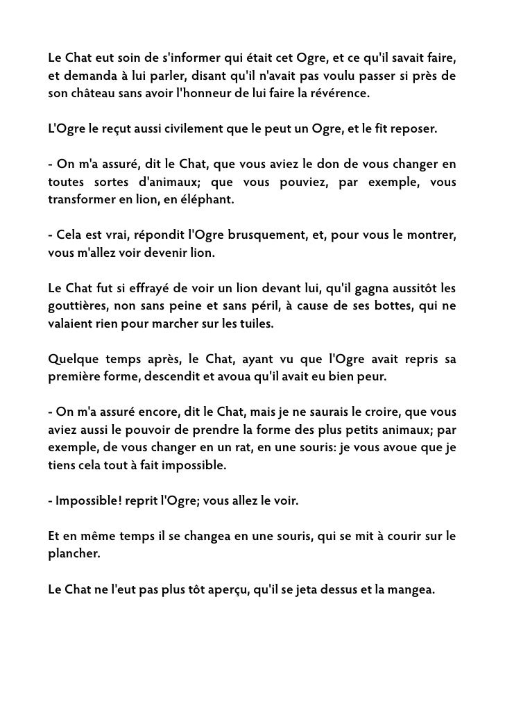 Le chat botte texte a imprimer. En vente en ligne et à la galerie 24 rue de Lappe Paris 11e En ce moment sur Achetez de l’Art La lettre de JeanLuc Chalumeau Lisez la lettre de JeanLuc Chalumeau à propos du livre Le Monde selon Picasso Réflexions, fulgurances et traits d’esprit par Laurent Greilsamer aux éditions Tallandier, et régalezvous des citations (moins. 10 juin 16 Articles relatifsChoisir de bons livres à lire à haute voix auxEstce que tu te promènes nue autour de tes enfantsGuide cadeau bas de farce pour papa, maman et enfantsHistoire étonnante de maman qui encourage lesHéroïne maman tuée dans un accident de voiture à laLa réalité de la vie de maman quand les enfants. Les contes et récits au cycle 3 publié le 19/06/07 mis à jour le 27/08/08 fiches de lecture et documents de travail sur le conte Pas de texte Le Chat Botté charles Perrault Imprimer L'article au.