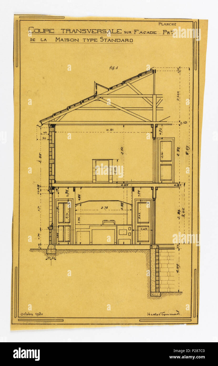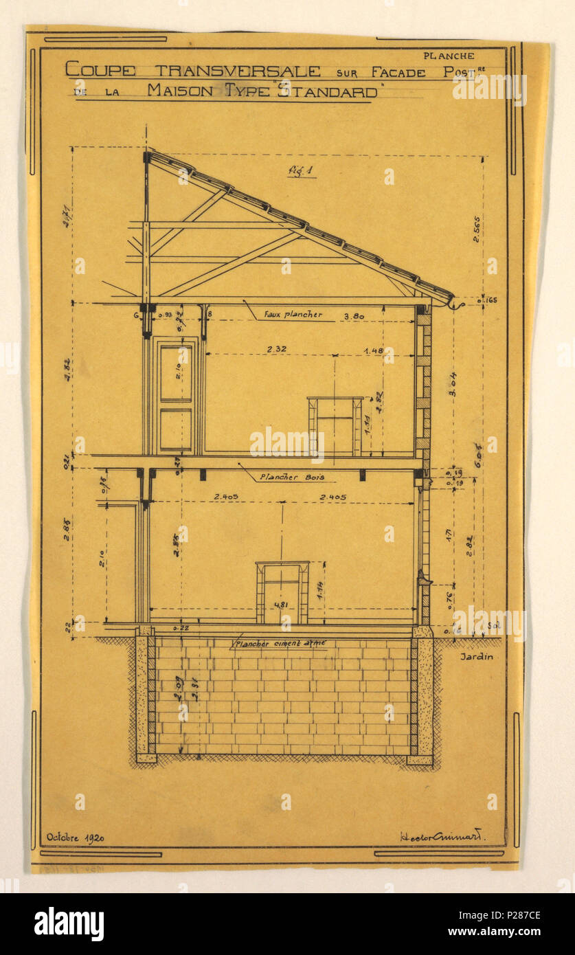 Inglese Disegno Design Per Un Mass Operational House Progettata Da Hector Guimard Sezione Trasversale Ottobre 19