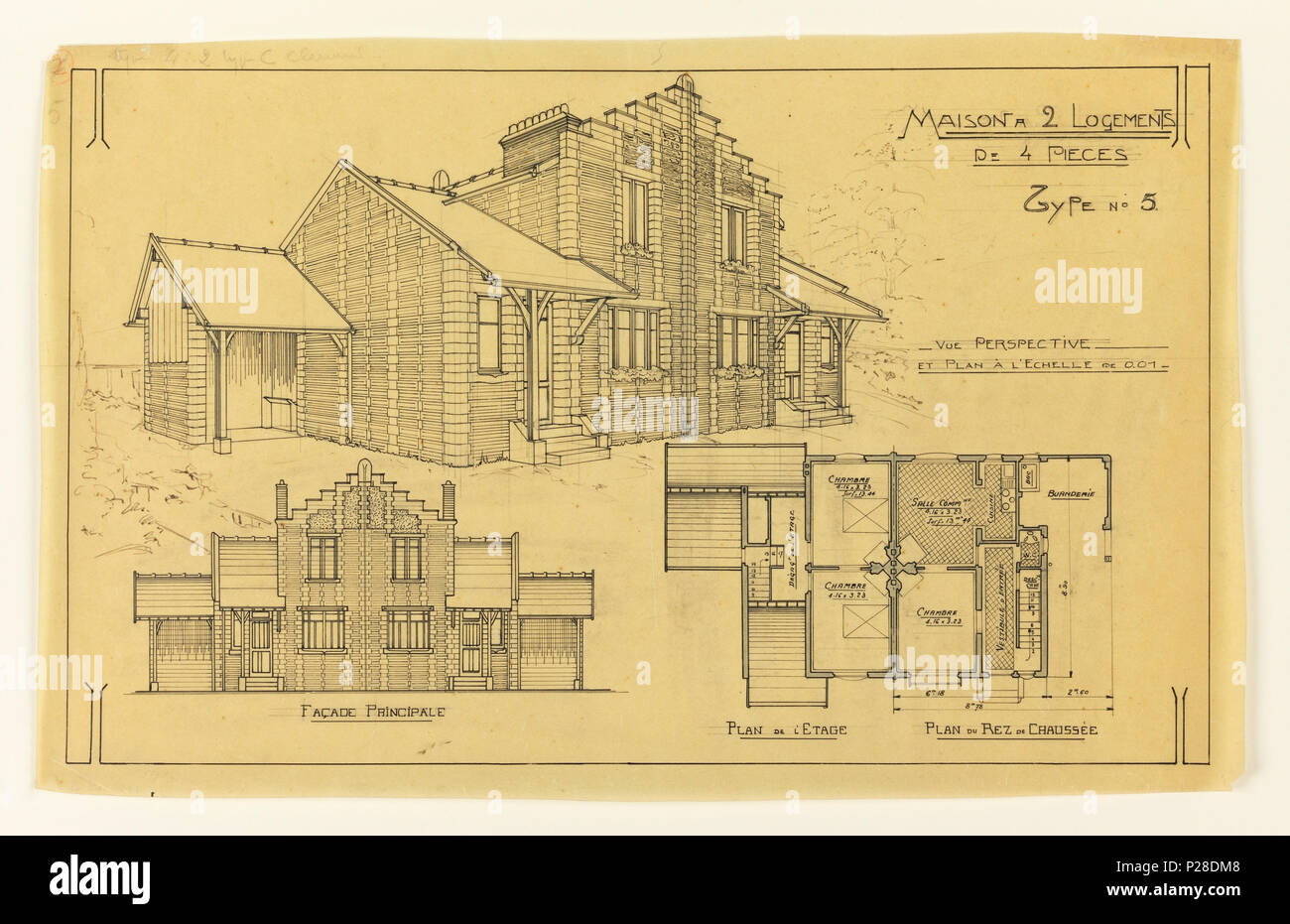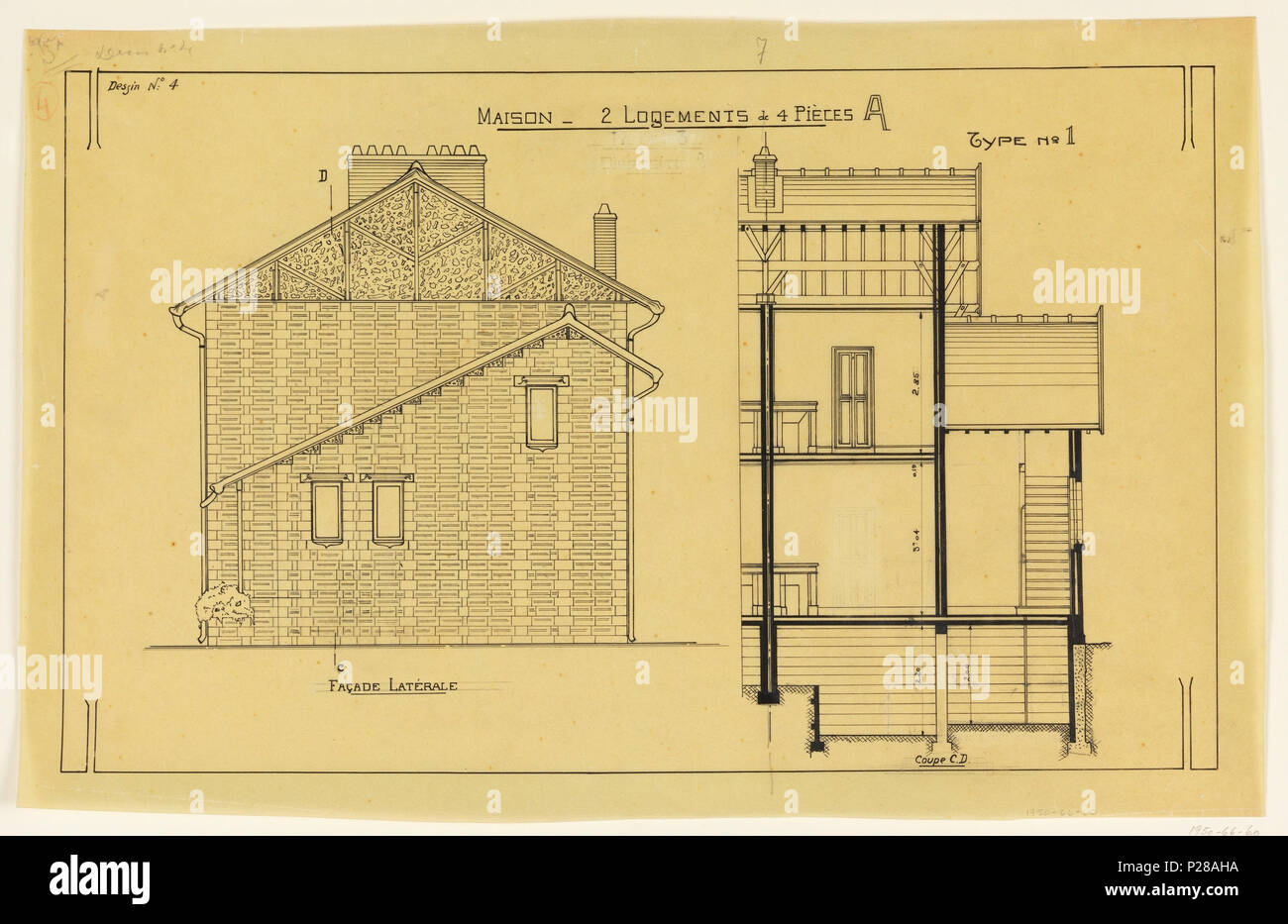 Inglese Disegno Vista In Alzato Frontale Di Una Casa Per La Soiete Anonyme Cooperativa L Ideale