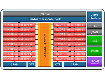 XCORE flexible multicore microcontrollers allow the user to program the mix of interfaces and functionality wanted for their design The xCORE microcontrollers provide a level of realtime performance not seen in other embedded processors.