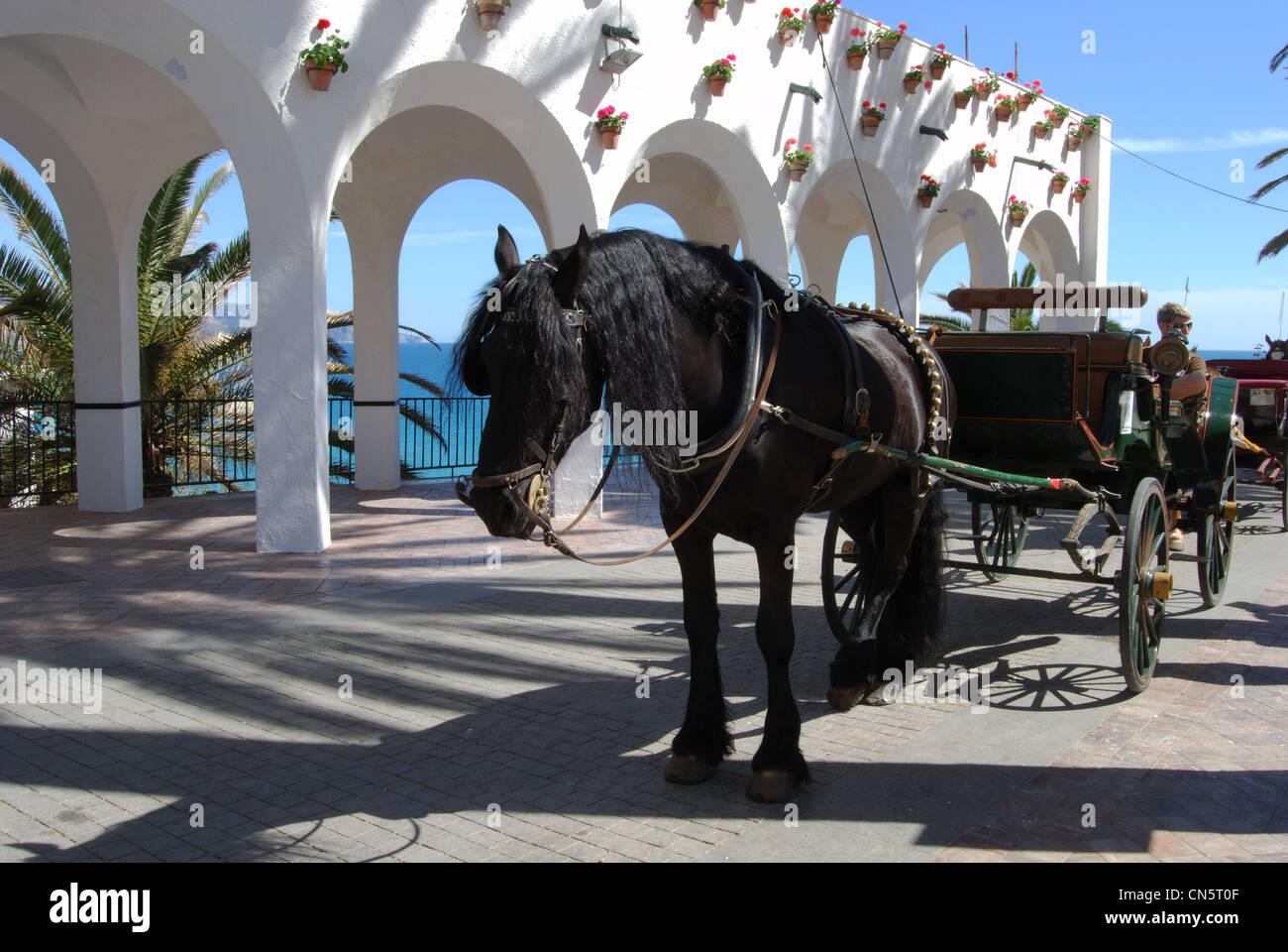 Carrozze Trainate Da Cavalli Lungo Il Balcone D Europa Balcon De Europa Nerja Provincia Di Malaga Andalusia Spagna Europa Occidentale Foto Stock Alamy