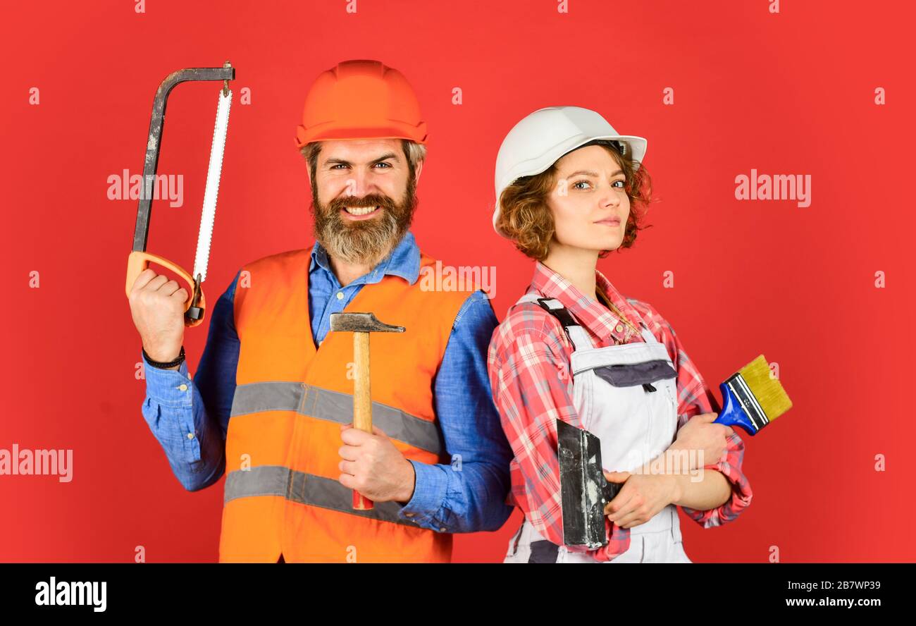 Creating Our Family Nest Diy Repair Construction Workers Home Renovation Couple Renovating House Woman Builder Hard Hat Man Engineer Or Architect Construction Site Interior Renovation Stock Photo Alamy