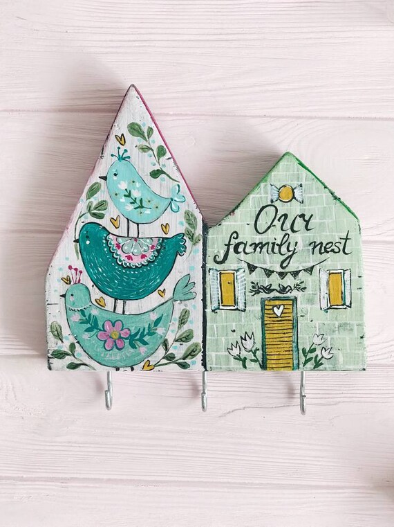 Key Holder For Wall Our Family Nest Wooden Organic Keys House Etsy