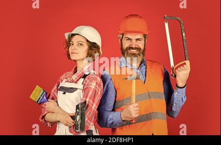 Home Renovation Couple Renovating House Woman Builder Hard Hat Man Engineer Or Architect Construction Site Interior Renovation Creating Our Family Nest Diy Repair Construction Workers Stock Photo Alamy