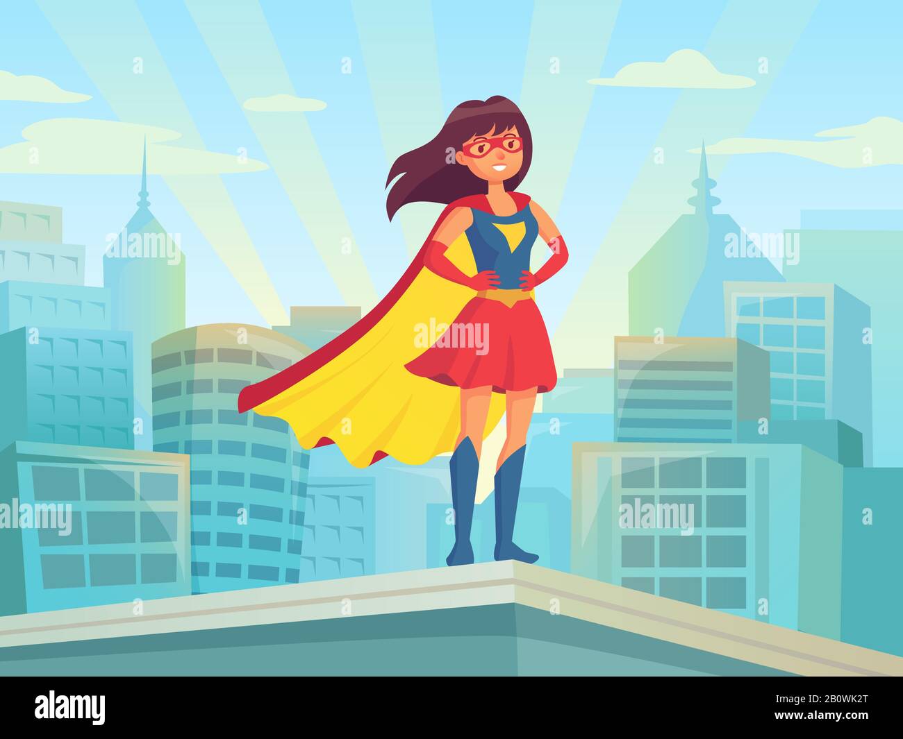 Super Donna Che Guarda La Citta Meraviglia Ragazza Eroe In Tuta Con Mantello Sul Tetto Della Citta Supereroe Femminile Comico Sulla Figura Vettoriale Del Paesaggio Urbano Immagine E Vettoriale Alamy