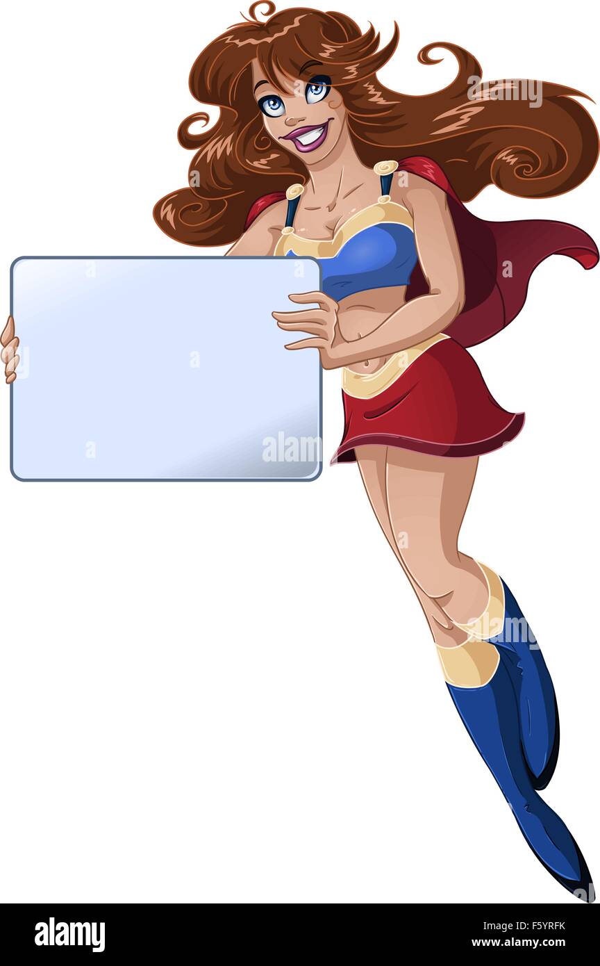Una Illustrazione Vettoriale Di Una Super Donna Tenendo Un Cartello In Mano Con Lo Spazio Vuoto Per Il Testo Immagine E Vettoriale Alamy